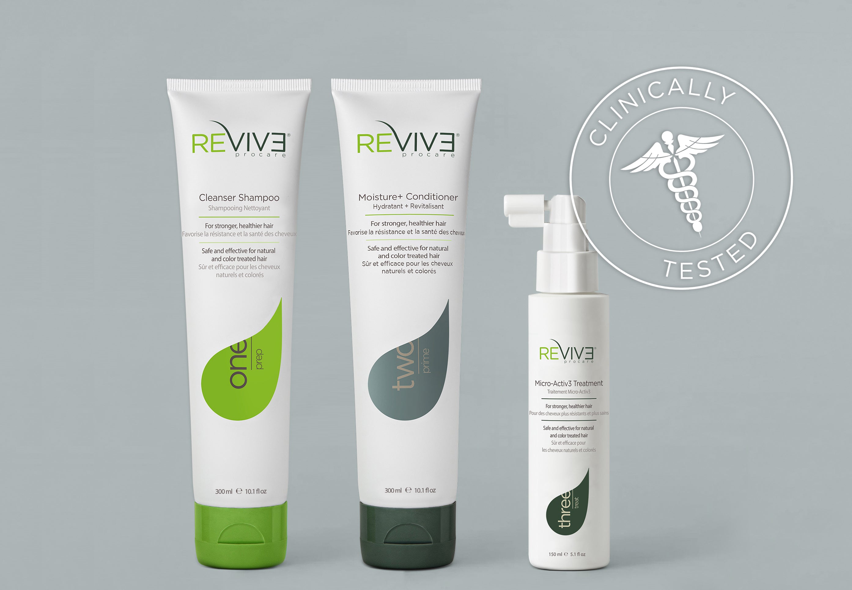 REVIV3 Prep Shampoo removes product build-up, environmental, and chemical residue. This first step of your hair care ritual prevents the clogging of your pores and hair follicles, and effectively breaks down DHT build-up which contributes to hair loss. Our Prime Moisture+ Conditioning treatment is an intensely hydrating blend of 16 naturally derived extracts, keratin amino acids, and plant-based proteins. This second step of your hair care ritual provides your hair with the nutrients necessary to repair hair follicle damage and maintain hair health. REVIV3 Treat is a leave-in Micro-Activ3 treatment that activates your hair follicle stem cells, repairs damaged hair, and protects you against hair shrinkage. This third step in your hair care regime delivers 15 active peptides and plant-based extracts to your hair follicles. Each step works together to combat major contributors to hair loss, resulting in fuller, healthier hair in no time at all.
